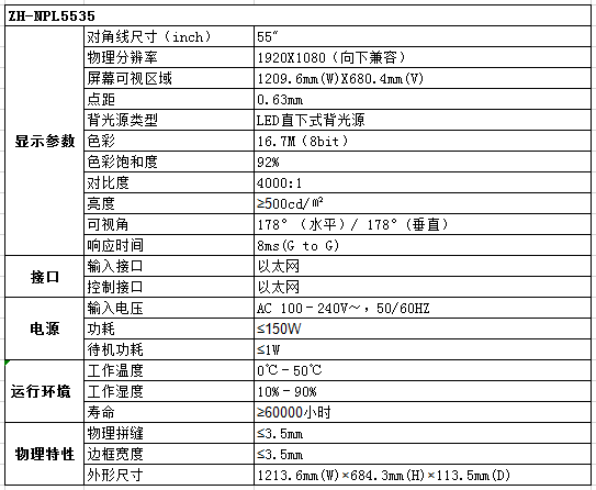 ZH-NPL5535網(wǎng)絡(luò)液晶拼接